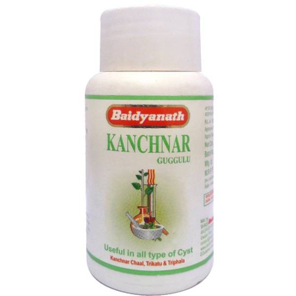 Kanchnar Guggulu, Baidyanath Kanchnar Guggulu, Ayurvedic medicine, blood purifier, cholesterol support, lymphatic drainage, hormone balance, thyroid support, skin health, acne treatment, eczema treatment, psoriasis treatment, varicose veins, hemorrhoids, fibroids, cysts, benign tumors, weight management, Guggul, 80 tablets, herbal supplement, natural remedy, detox, hypothyroidism, hyperthyroidism, menstrual irregularities, endometriosis, respiratory support.