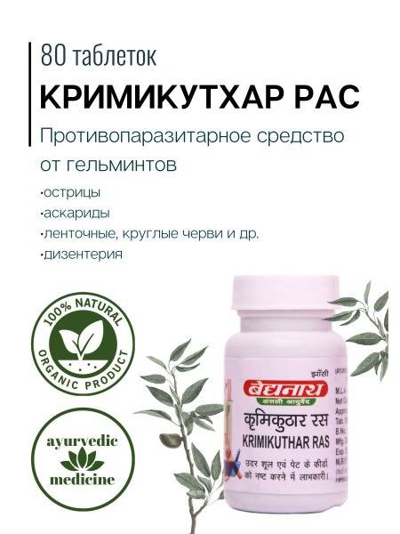 Baidyanath Krimikuthar Ras, Krimikuthar Ras, Ayurvedic Parasite Cleanse, Antiparasitic Supplement, Carminative, Digestive Aid, Antispasmodic, Antimicrobial, Ayurvedic Medicine, Natural Parasite Treatment, Gut Health, Digestive Health, Bloating Relief, Dysentery Relief, Chlamydia, Whooping Cough, Ascaris, Hookworm, Whipworm, Parasite Prevention, India, Baidyanath, Herbal Supplement, 80 Tablets