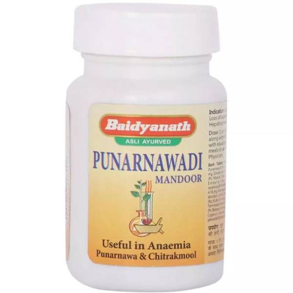 Punarnavadi Mandoor helps improve hemoglobin levels, combats anemia, supports lipid metabolism, and boosts the immune system. It's also beneficial for inflammatory conditions such as rheumatism, rheumatoid arthritis, and gout. It may also help with high blood pressure, abdominal pain, dermatitis, skin infections, varicose veins, and hemorrhoids.