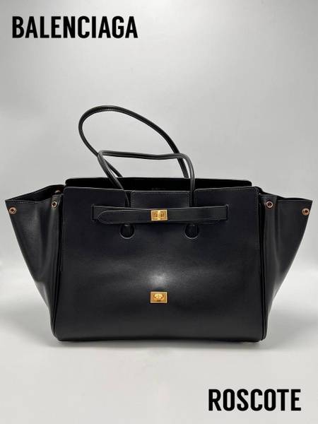 The Balenciaga Bel Air Medium Carryall in black smooth calfskin is the epitome of understated luxury. Featuring aged bronze and silver hardware, this versatile bag measures L10.2" x H11.4" x W6.3". Crafted from supple calfskin, it offers ample space for everyday essentials. Two top handles (7.8" drop) allow for comfortable hand or shoulder carry. The iconic Balenciaga Paris logo is subtly embossed in silver foil on the back. Practical details include a detachable leather key holder with two split rings, side press studs, a turn-lock closure with straps, and engraved hardware. Inside, discover one main compartment, two zipped pockets, and two flat pockets, all lined in luxurious nappa sheepskin. A wide front pocket adds extra convenience. This is more than a bag; it's a statement.