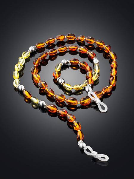 Elevate your eyewear with this exquisite Baltic amber eyeglass chain. Crafted from genuine, vibrant Baltic amber stones (9x7x4 mm), this 70cm chain is the perfect blend of function and fashion. A trending accessory for both sunglasses and eyeglasses, it adds a touch of unique sophistication while ensuring your eyewear is always safe and within reach. Embrace this season's must-have piece – a stylish statement that reflects your individual flair and keeps up with the latest fashion trends.