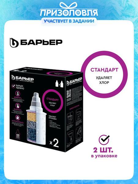 This 2-pack of replacement cartridges fits all BARRIER Standard water filter pitchers. Effectively removes chlorine, heavy metals, and other harmful impurities, eliminating unpleasant tastes and odors. Each cartridge filters up to 350 liters of water. BARRIER cartridges are universally compatible with all BARRIER pitchers, simplifying replacement. A secure, threaded connection prevents unfiltered water from contaminating the purified water. While cartridge lifespan depends on water quality (maximum 350 liters per cartridge), using a BARRIER pitcher is up to 165 times more economical than bottled water and helps save the planet from over a ton of plastic waste. Cartridges are recyclable once their lifespan is complete.