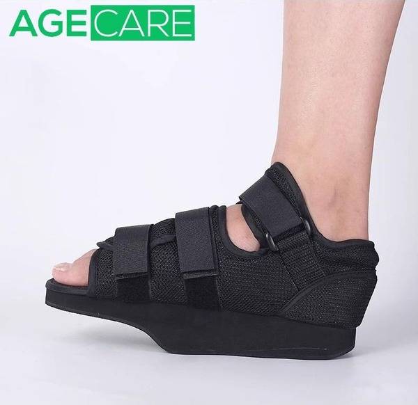 The Age Care Baruka Post-Operative Foot Device (Art. 810-01) is designed for post-operative rehabilitation and injury recovery of the forefoot. This comfortable device features a specialized wedge sole that effectively shifts weight from the forefoot to the heel, minimizing pressure on sensitive areas and promoting faster healing.