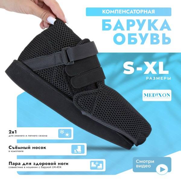 The Medixon LM-406 Compensatory Baruka Shoe provides ergonomic comfort for patients recovering from surgery on one foot. Its easy-to-use hook-and-loop closure allows quick and simple application without stressing the surgical site. The durable PVC sole offers excellent cushioning and stability, while the textile, polymer, and synthetic material insole enhances comfort and support. Ideal for post-operative recovery after various procedures, this Baruka shoe promotes safe and swift rehabilitation. It's also a convenient option for those using the LM-404 post-operative shoe. View the size chart in the product details. Wishing you a speedy recovery! From your friends at Medixon.