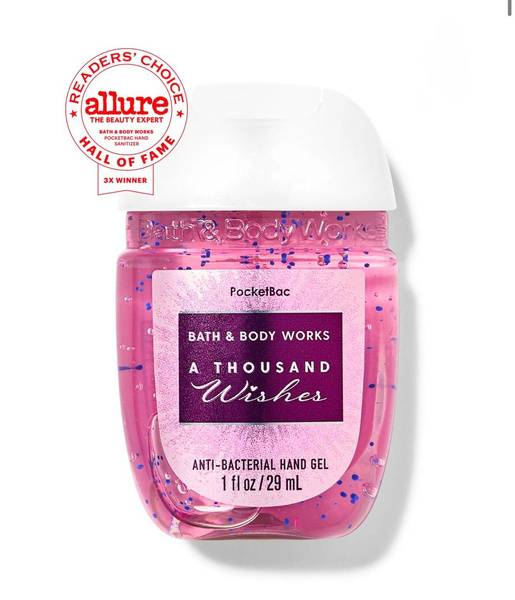 Indulge your senses and protect your health with the Bath & Body Works A Thousand Wishes PocketBac Hand Sanitizer. This convenient 29ml bottle is perfect for your purse, backpack, or car, offering superior germ protection wherever you go.