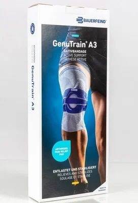 Experience superior support and pain relief with the Bauerfeind GenuTrain A3 knee support, size 5, for the right knee. This high-performance brace utilizes innovative 3D knit technology for a comfortable, customized fit and optimal compression. Targeted pressure stimulates proprioception, improving stability and reducing pain associated with osteoarthritis, ligament injuries, and post-operative recovery. The breathable material ensures all-day comfort, while the anatomically shaped design allows for unrestricted movement. Find relief and regain mobility with the Bauerfeind GenuTrain A3. Order your size 5 right knee support today.