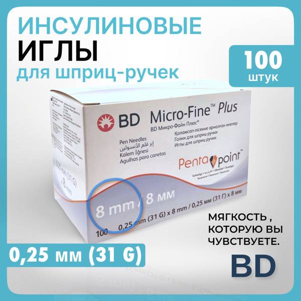 BD Micro-Fine Plus 8mm (31G) insulin pen needles offer superior comfort and efficiency for your insulin injections. These universally compatible needles are designed with a unique 5-bevel point for virtually painless insertion. A silicone coating ensures smooth penetration, minimizing discomfort and reducing the risk of irritation. Our thin-wall technology further enhances the injection process by facilitating faster insulin delivery.