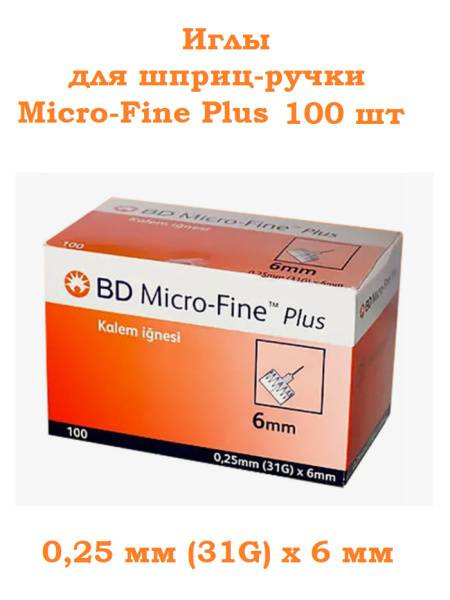 Description: BD Micro-Fine Plus 31G (0.25mm) x 6mm insulin pen needles (100 count). These ultra-fine, disposable needles are designed for comfortable insulin injection and are compatible with most insulin pen brands. The 6mm length is ideal for newborns and young children. Experience virtually painless injections with BD Micro-Fine Plus.
