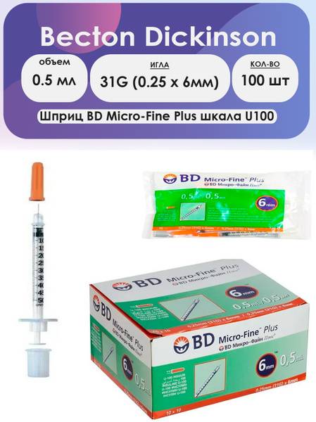 Experience superior comfort and precision with BD Micro-Fine Plus 0.5ml U-100 insulin syringes featuring a 31G (0.25 x 6mm) needle. These syringes, manufactured in the USA to the highest quality standards, minimize pain and skin trauma thanks to their ultra-fine needle. The box of 100 provides an economical solution for healthcare facilities and home users alike. Ideal for insulin and other hormone injections, their U-100 markings and 0.5ml capacity make them a popular choice for diabetics and individuals requiring regular medication. The innovative design ensures easy medication control, while the needle material reduces the risk of injection site reactions. Choose BD Micro-Fine Plus syringes for a painless, efficient, and safe injection experience. Trust Becton Dickinson, a leader in medical supplies, for reliable and professional-grade injection tools. Improve your injection experience today.