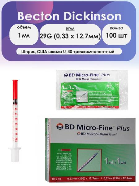 Keywords: BD Micro-Fine Plus, insulin syringes, 1ml syringe, 29G needle, U-40 scale, diabetes supplies, mesotherapy, cosmetic injections, sterile syringes, single-use syringes, Becton Dickinson, BD, medical supplies, disposable syringes, 100 count, triple-bevel needle.
