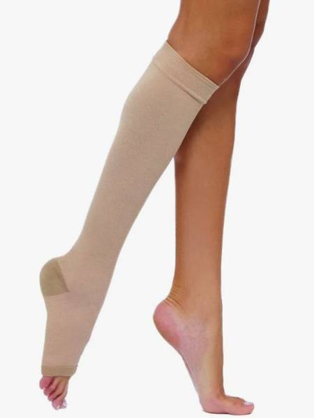 Compression socks, compression stockings, knee-high compression socks, varicose veins, venous insufficiency, Class 1 compression, 18-21 mmHg, open toe socks, beige compression socks, medical compression socks, support socks, leg pain relief, heavy legs, edema, post-surgery recovery, post-partum recovery, made in Russia, Center Compress.