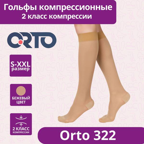 Size chart available in product images. Available in two lengths: Norm (average height) and Long (tall). Compression is graduated from the ankle to the upper third of the calf. Choose ORTO 322 for superior comfort and long-lasting support.