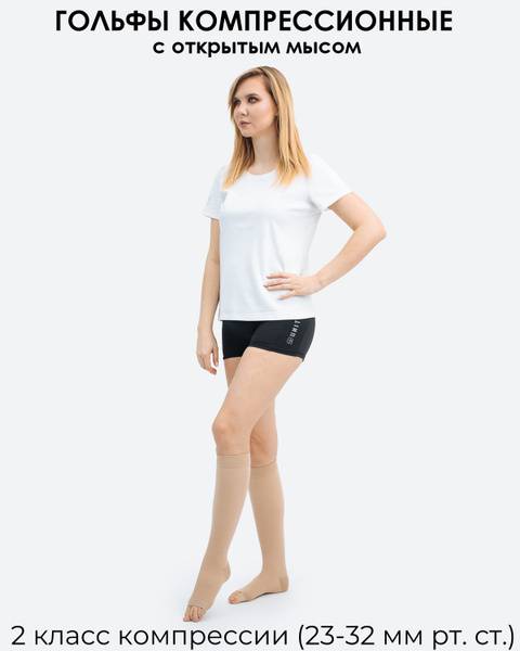 Title: Beige Compression Socks, 20-30 mmHg, Open Toe, Medical Grade