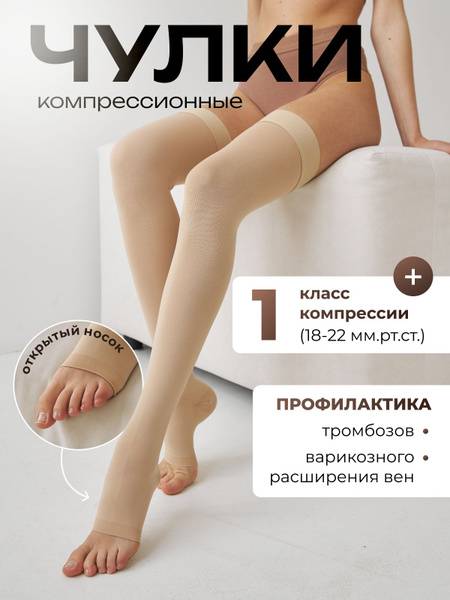 Experience relief from leg pain, swelling, and fatigue with these Class 1 (18-22 mmHg) compression stockings. Designed with an open toe for comfort, they improve circulation and help prevent and manage varicose veins and thrombosis. Suitable for men and women, including pregnant individuals and those recovering from surgery or illness. Ideal for prolonged sitting or standing, travel, and post-operative care. Made with hypoallergenic silicone for a secure, comfortable fit, these high-quality stockings offer superior support and alleviate pressure on the vascular system. Shop now and discover a wide range of sizes and receive special gifts with your purchase. We also offer Class 1 & 2 compression stockings for post-surgical, postpartum, and anti-embolic use.