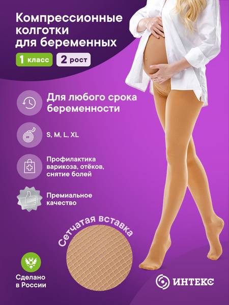 Experience superior comfort and support throughout your pregnancy with Intex Beige Compression Stockings. Specifically designed by Russian manufacturing professionals at INTERTEXTIL, these stockings feature a breathable mesh panel and elastic waistband for gentle abdominal support as your baby grows. Crucially, these stockings offer graduated compression (15-20 mmHg), gradually decreasing from ankles to thighs. This promotes healthy blood circulation, reducing the risk of varicose veins – a common concern during pregnancy. Refer to the size chart in the image gallery for accurate sizing. Choose Intex for comfortable, effective pregnancy support. For labor and delivery, consider Intex's anti-embolic hospital stockings for optimal care. Protect your health and your baby's well-being throughout your pregnancy journey.