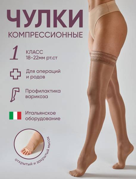 Filorosso compression garments are manufactured in St. Petersburg using Italian equipment. High-quality materials and advanced knitting techniques guarantee comfort, hypoallergenic properties, and safe wear. Filorosso compression stockings combine health benefits with elegance: a satiny sheen and lace detailing enhance your look while the compression provides a slimming effect.