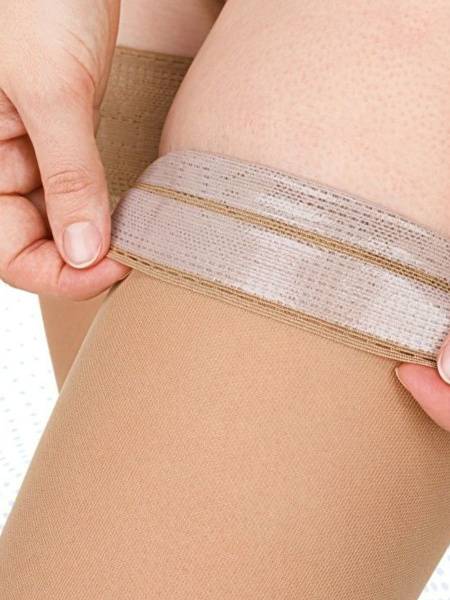 Experience superior comfort and support with our Class 1 Beige Compression Stockings. Featuring silicone banding for a secure fit, they alleviate symptoms of tired legs, varicose veins, and more. Ideal for pregnancy, prolonged standing/sitting, and preventing deep vein thrombosis (DVT).