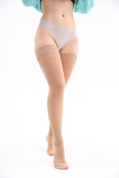 Designed for ultimate comfort, these stockings feature a unique 3D knit construction, resulting in a soft, flexible feel that's easy to put on and wear all day long. A special hypoallergenic, silicone-free waistband ensures a comfortable fit even for sensitive skin. The massaging insole provides additional comfort and promotes healthy circulation. The open toe design offers breathability and convenience.