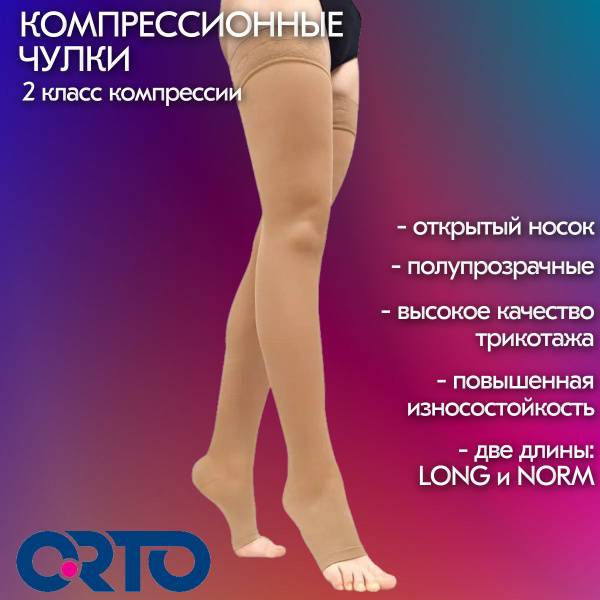 Description: Experience superior comfort and support with ORTO's beige compression stockings, featuring a gentle compression class 2 and open toe design. Perfect for summer, these sheer stockings promote healthy circulation, alleviate fatigue and swelling, and provide relief from symptoms like night cramps and leg pain. The durable, double-woven fabric with reinforced toe and heel ensures long-lasting wear and resistance to runs and snags. Flat seams prevent pinching and maintain a smooth, aesthetically pleasing appearance. Ideal for varicose vein prevention and pregnancy support, these stockings offer graduated compression from the ankle to the upper calf. Available in two lengths (Norm & Long) to accommodate various heights, and crafted with high-quality, extra-durable polyamide (Extradull) for enhanced resilience and quick-drying properties. Maintain their pristine look and compression effectiveness for up to 6 months with proper care (daily 5-minute wash). Size chart available in product photos.