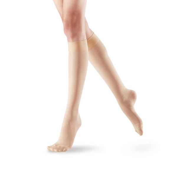 Alleviate leg fatigue and help prevent varicose veins with OppO beige compression stockings. Perfect for smaller feet, these stockings measure (morning measurements): ankle 20-22cm, calf 31-33cm, thigh 48-60cm.