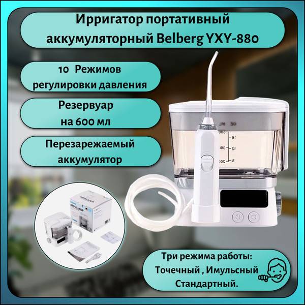 Description: The Belberg YXY-880 portable water flosser offers superior oral hygiene with advanced technology. Enjoy customizable cleaning with 10 pressure settings and 3 operational modes (pulse, standard, and targeted). Its large 600ml water tank minimizes refills, while the rechargeable battery ensures cordless convenience. IPX4 water resistance protects against splashes, and the LED display provides clear feedback. This full-sized, portable device makes achieving optimal oral health effortless.