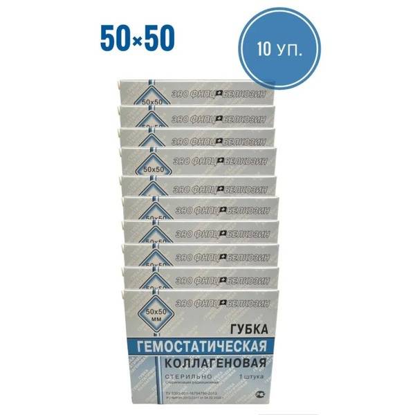 Belkozyn sterile collagen hemostatic sponges offer rapid and effective bleeding control for various wounds, including surgical incisions and traumatic injuries. These 50x50mm, bioresorbable sponges are designed for local application, promoting tissue regeneration and reducing inflammation. Their porous structure ensures excellent adhesion to the wound bed, facilitating hemostasis. Containing boric acid and furacilin, Belkozyn sponges provide antiseptic properties. Suitable for use in diverse surgical procedures (cholecystectomy, hernioplasty, appendectomy, gynecology, otorhinolaryngology), wound treatment (including secondary intention healing), and parenchymal organ defect repair. Simply apply the sponge to the bleeding area and press for 1-2 minutes. The sponge fully resorbs, eliminating the need for removal. A pack contains 10 individually sterile sponges. Contraindications: Arterial bleeding, individual intolerance to nitrofuran derivatives (furacilin, furagin), purulent wounds, and pyoderma. For external use only.