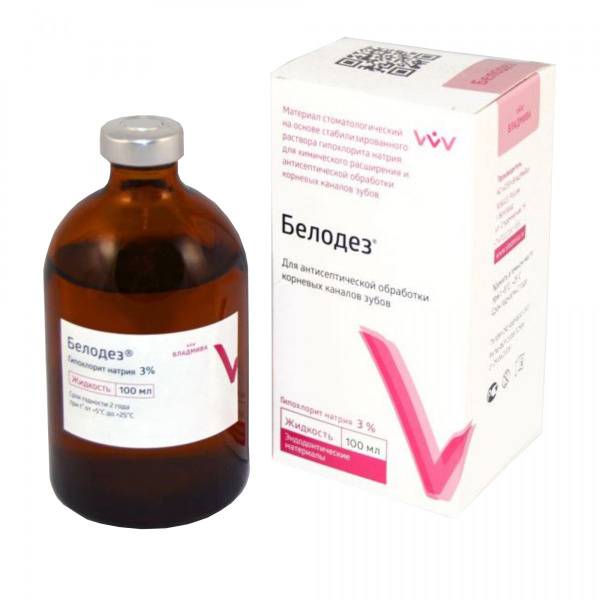 Belodez, 3% sodium hypochlorite, root canal irrigation, root canal disinfection, endodontics, EDTA, smear layer removal, antimicrobial, hemostasis, tooth whitening, dental, dental supplies, root canal treatment, dentin, necrotic tissue, 100ml, VladMiVa.