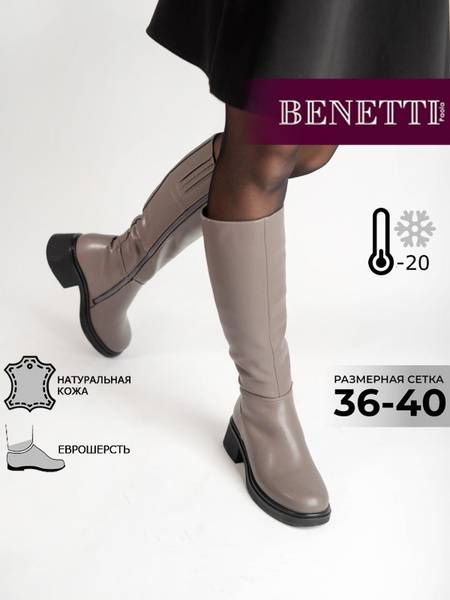 Indulge in the ultimate comfort and style with Benetti women's high winter boots, crafted from premium genuine leather. These elegant boots are designed to keep your feet warm and stylish throughout the coldest months. The generous euro-wool lining (natural wool up to the ankle) provides exceptional insulation without adding extra bulk to the leg. Experience the perfect balance of warmth and a streamlined look that accentuates the beauty of your legs.