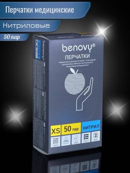 BENOVY blue nitrile disposable examination gloves offer superior protection and comfort. These powder-free, textured gloves are designed for single use and provide a reliable barrier against a wide range of substances, including weak acids, alkalis, and certain chemicals. Ideal for medical examinations, cosmetic procedures (manicure, pedicure, waxing), and food handling, they protect both patients and healthcare professionals from contamination. The textured fingertips ensure a secure grip on instruments, while the non-powdered formula minimizes the risk of contact dermatitis. Made from hypoallergenic nitrile (latex-free), these gloves are compatible with most touchscreens. Each box contains 100 gloves (50 pairs) in a convenient carton. Size: XS.