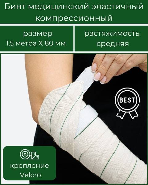 Title: BEST Elastic Compression Bandage with Velcro Closure - 1.5m x 80mm