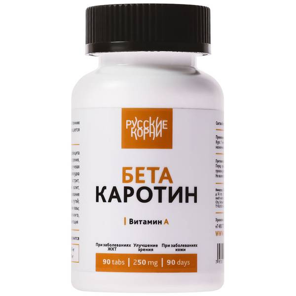 Keywords: Beta-carotene, Vitamin A, provitamin A, antioxidant, eye health, vision support, immune system support, skin health, cancer prevention, cardiovascular health, respiratory health, 90 tablets, 250mg, natural supplement, Russian Roots, Macular degeneration, night blindness, free radical damage, cell growth, healthy skin, healthy vision, immune booster.