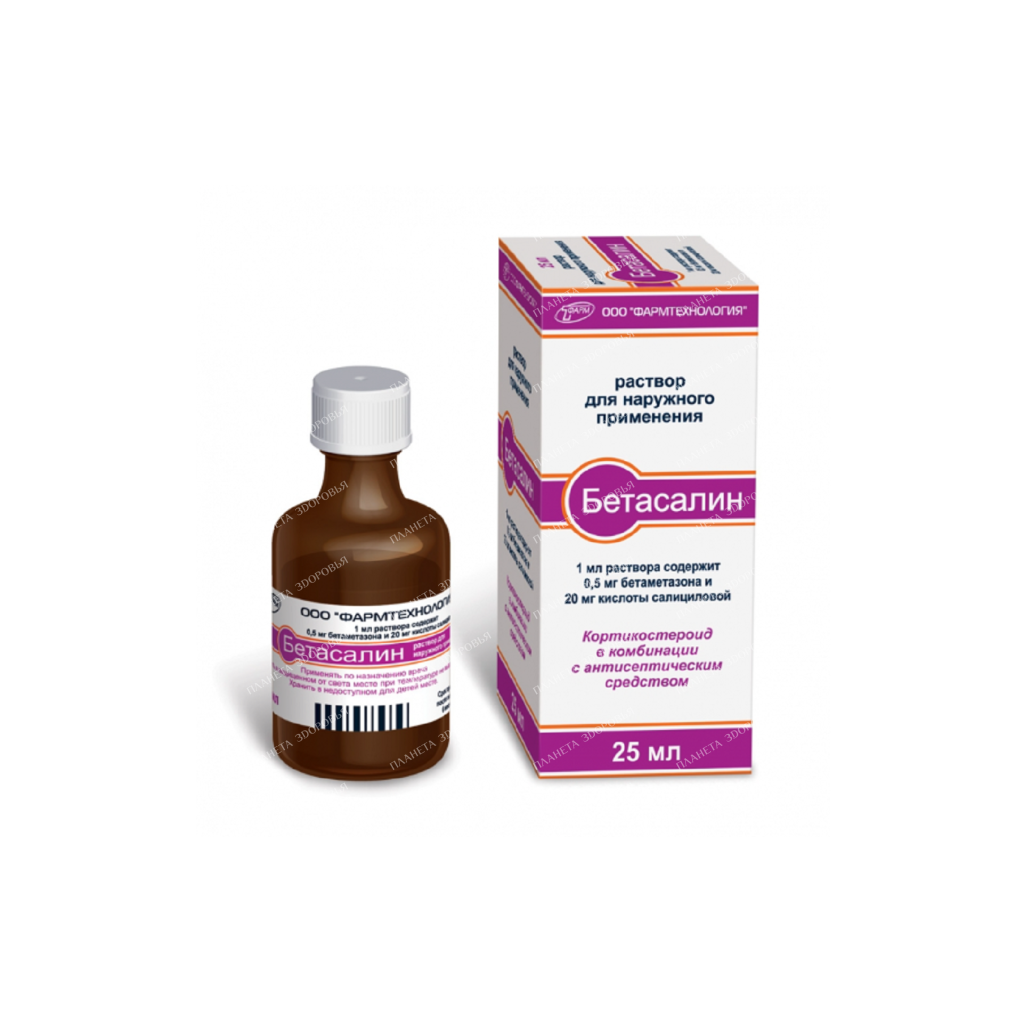 Betasalin solution for external use (0.5mg+20mg)/1ml 25ml β1 offers effective relief for various skin conditions. This topical solution combines the power of betamethasone, a potent anti-inflammatory corticosteroid, with salicylic acid, a keratolytic agent.