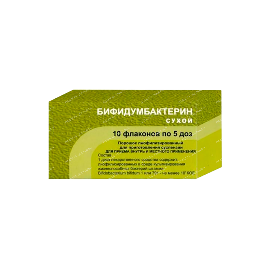 Name Bifidumbacterin dry.lyoph.por.d/app.susp.d/pr.in.and local.app.5 doses per vial in pack No. 10 taste. Marbling, the presence of uneven surfaces of the porous mass is allowed. in adults and children. For children (including premature babies), the drug can be used from the first days of life. Bifidumbacterin dry is used to restore microbiological balance in the intestines: in acute and chronic inflammatory diseases of the large and small intestines in children and adults, occurring against the background of microflora disorders with a deficiency of bifidobacteria; with intestinal dysfunctions after antibiotic and radiation therapy; in the complex therapy of patients with acute intestinal infections of a bacterial and viral nature, convalescents with symptoms of intestinal dysfunction, for the prevention of intestinal dysfunction during antibiotic therapy of children with pyoinflammatory diseases; for the prevention of intestinal dysfunctions in premature babies, as well as in children during the neonatal period with an early transfer to artificial feeding. Bifidumbacterin dry is used: to normalize vaginal microbiocenosis in the complex therapy of bacterial colpitis, including in pregnant women. Dosage and administration Bifidumbacterin dry for intestinal diseases is used orally, and in obstetric and gynecological practice intravaginally. Remove the metal cap and rubber stopper from the vial. The contents of the vial are dissolved with boiled water at room temperature at the rate of 1 teaspoon per 1 dose of the drug. Method of dissolution: the required amount of teaspoons of water is poured into a glass (in accordance with the number of doses indicated on the container label), then a small amount of water is transferred from the glass into the bottle to dissolve the dry mass. After dissolution, the contents of the vial are transferred to the same beaker and mixed. One teaspoon of the drug dissolved in this way constitutes one dose. The required number of doses (respectively, teaspoons) is drunk 20-30 minutes before meals. For infants, the drug can be given immediately before feeding. In intestinal diseases, the duration of the course of treatment with bifidumbacterin is determined by the severity of clinical manifestations, the age of the patient and is 2-4 weeks, and in some cases up to 3 months. For prophylactic purposes, 5 doses are prescribed 1-2 times a day for 1-2 weeks. For newborns of the "risk" group, it is advisable to start using the drug in the maternity ward from the first day of life until discharge, 1-2 doses per dose 3 times a day. In case of intestinal diseases in children of the first six months of life, the drug is prescribed 3 doses per dose 3 times a day. Children of the second half of the year and older - 5 doses 2 times a day. If children develop disorders of the gastrointestinal tract and the threat of ulcerative necrotic enterocolitis, up to 10 doses per day are prescribed. In acute chronic inflammatory diseases of the small and large intestines, colitis and enterocolitis in adults, 5 doses 2-3 times a day are recommended. In complex therapy with antibiotics and other antibacterial drugs, it is recommended: for children under 1 year old, 5 doses 2-3 times a day, for children over 1 year old, 5 doses 3-4 times a day, for adults, 10 doses 2-3 times a day. For intravaginal administration, bifidumbacterin is dissolved in the manner indicated above. The resulting suspension of the drug is impregnated with a sterile swab, which is administered intravaginally and left for 2-3 hours. In inflammatory gynecological diseases and prenatal preparation of pregnant women of the "risk" group, bifidumbacterin is prescribed 5-10 doses 1 time per day for 5-8 days under the control of restoring the purity of the vaginal secretion to I-II degree and the disappearance of clinical symptoms of inflammation. If necessary, the course of treatment with bifidumbacterin can be repeated. Use during pregnancy and lactationThe use of women during pregnancy and lactation is allowed. Precautions Do not dissolve the drug in hot water (above 40 °C). Do not store in solution. Use with caution in persons with lactose intolerance and cow's milk casein. No features of the use of the drug in persons with impaired liver and kidney function have been identified. Allowed for use by women during pregnancy and lactation. No features of application in gerontological practice have been identified. Does not affect the ability to drive vehicles and work with dangerous mechanisms. Interaction with other drugs There are no undesirable effects in the interaction of bifidumbacterin with other drugs. With the simultaneous use of bifidumbacterin with vitamins (especially group B), the effect of the drug is enhanced. When taken with antibiotics and chemotherapeutic drugs, the therapeutic efficacy of bifidumbacterin may decrease. Contraindications There are no contraindications for the use of the drug Composition of 5 doses of the drug. 1 dose of the drug contains: lyophilized in the cultivation medium of viable bacteria of the Bifidobacterium bifidum 1 or 791 strain - at least 107 CFU. The cultivation medium consists of yeast autolysate, casein enzymatic hydrolyzate, lactose monohydrate, sodium chloride, L-cystine, food agar, purified water. Overdose At present, no adverse effects have been reported in cases of drug overdose. Side effects There are no side effects. At the beginning of taking Bifidumbacterin dry, a temporary loosening of the stool is possible. In this case, the abolition of the drug is not required. Storage conditions In a place protected from light at a temperature of 2 ° C to 8 ° C. Keep out of the reach of children. Shelf life - 1 year. Do not use after the expiry date stated on the package. Buy Bifidumbacterin dry lyophilized powder for oral and topical suspension preparation 5 doses №10 Bifidumbacterin dry lyophilized powder for oral and topical suspension preparation 5 doses №10 and topic