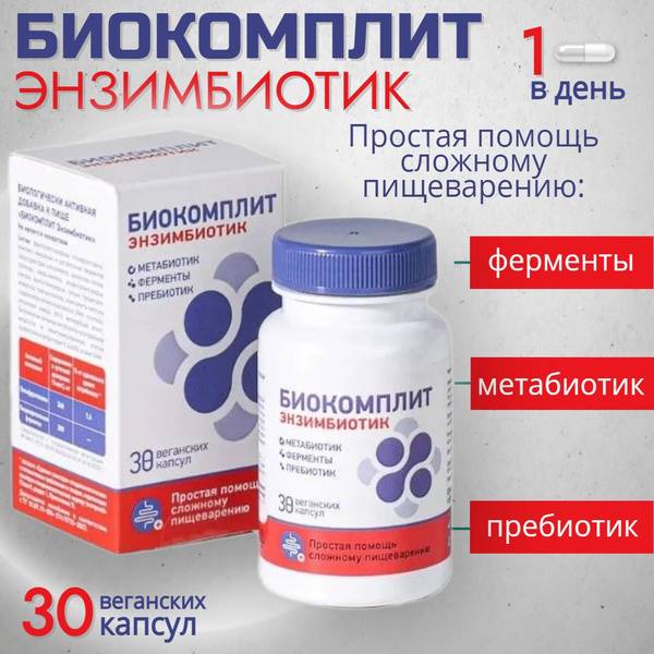 Title: BioComplete Enzybiotic Capsules: Digestive Enzymes, Metabiotic & Prebiotic for Improved Gut Health (450mg, 30 Capsules)