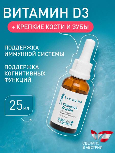 Biogena Vitamin D3 1000 IU Drops offer a convenient liquid form of Vitamin D3, essential for immune function, bone health, mood regulation, blood production, and cardiovascular support. Each drop delivers 1000 IU (25 mcg) – the optimal daily dose for maintaining physiological levels or addressing deficiencies. The oil-based solution ensures superior absorption with a neutral taste. Biogena uses only pure ingredients, free from dyes, preservatives, anti-caking agents, artificial flavor enhancers, and other additives, ensuring maximum quality and effectiveness. Support your overall well-being with Biogena Vitamin D3 Drops.