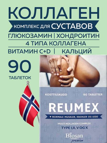 Biosan Reumex+ is ideal for men and women seeking to proactively maintain joint health, or as a supportive supplement during recovery. Each 885mg tablet provides a potent dose of key nutrients. Consult your physician before use. A typical course of use is one month, and may be repeated as needed.