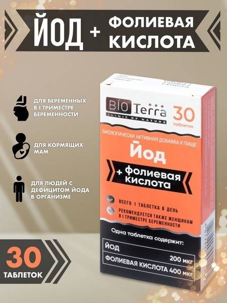 Bioterra Iodine + Folic Acid Tablets: 200mcg Iodine, 400mcg Folic Acid (30 Tablets)