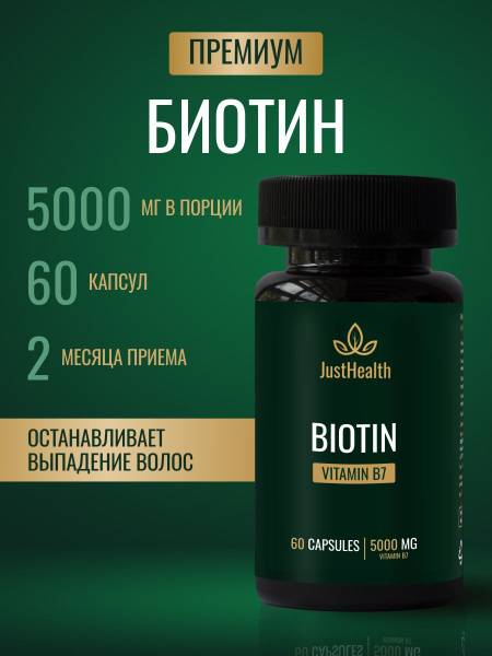 Experience the transformative power of JustHealth Premium Biotin 5000 mcg, a high-potency vitamin B7 supplement designed to nourish your hair, skin, and nails from within. Each capsule delivers 5000 mcg of biotin, a crucial nutrient for promoting healthy hair growth and preventing breakage.