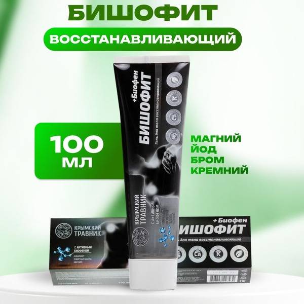 SEO Keywords: Bischofite gel, Biophen gel, body gel, regenerating gel, anti-inflammatory gel, pain relief gel, joint pain relief, muscle pain relief, osteoarthritis treatment, antioxidant gel, magnesium gel, herbal gel, Crimean Herbalist, natural pain relief, anti-aging gel, cellulite treatment, varicose veins treatment, muscle recovery, sports recovery, sophora japonica, butcher's broom, gingko biloba, dioscorea caucasica, rosemary oil, fir oil.