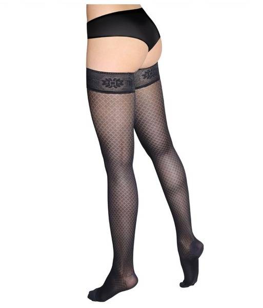 ORTO Compression Socks in black are designed for women and provide graduated compression to support venous circulation. These compression socks feature a diamond pattern that visually slims the legs and offers an elegant appearance that complements any outfit.