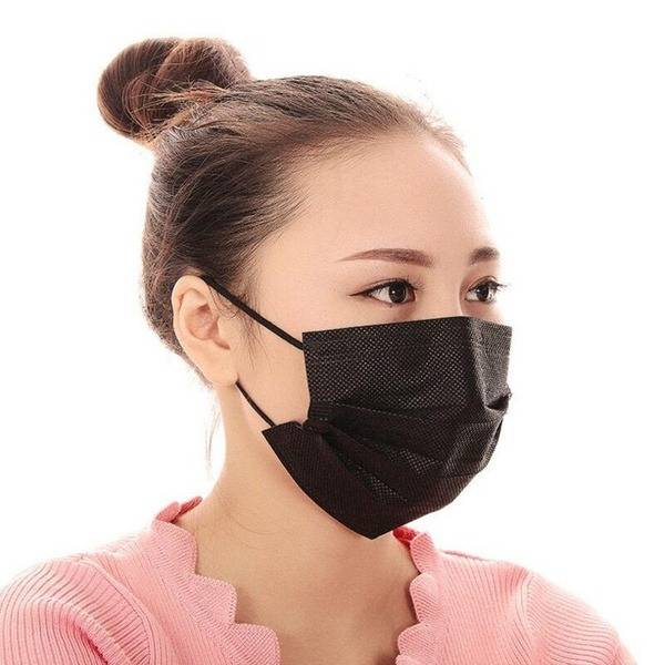 MAKINO three-layer medical face mask in black is designed for routine hygiene in medical, wellness, and public settings. A molded nose wire and elastic ear loops help maintain fit across size L-S while supporting comfortable wear during extended use.