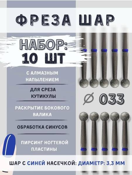 Achieve professional-grade manicures and pedicures with this 10-piece set of diamond ball nail bits. Designed for precise cuticle trimming and nail preparation, these bits feature a blue grit (033) indicating medium abrasiveness, perfect for delicate cuticle work and side wall treatment. Crafted from high-quality diamond material, these bits ensure exceptional durability and consistent performance, making them a reliable choice for both salon professionals and home users.