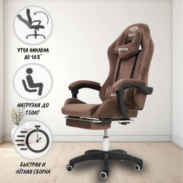 Experience unparalleled comfort and support with the Velur gaming chair. Crafted from premium materials, this chair boasts a robust build designed for extended use, whether you're conquering virtual worlds or powering through a workday. Its ergonomic design, featuring adjustable height and backrest recline, perfectly conforms to your body's natural curves, promoting proper posture and reducing fatigue. The plush, brown leather upholstery adds a touch of sophistication, while the integrated headrest and padded armrests provide superior comfort during those long gaming sessions or intensive work periods. Designed for both style and functionality, the Velur chair seamlessly integrates into any home or office environment. Its smooth-rolling casters protect your floors, and its durable construction ensures years of reliable performance. Upgrade your workspace today with the Velur gaming chair – the perfect blend of comfort, style, and ergonomic support.