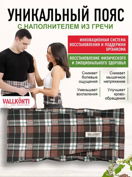 The Vallkonti Heating Pad with Buckwheat is a therapeutic support belt designed for both men and women. It provides warmth and comfort for the back and lower back area, offering a natural and safe way to support musculoskeletal health.