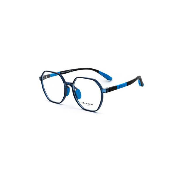 Description: Stylish and functional, the CALANDO 5294 C3 BLUE CRYSTAL/BLUE children's medical eyeglass frames offer comfortable vision correction. These black frames with blue accents and clear lenses feature a classic rimmed design crafted from high-quality materials. Designed for optimal comfort, they boast a 135mm temple length, 49mm lens width, and 17mm bridge width.