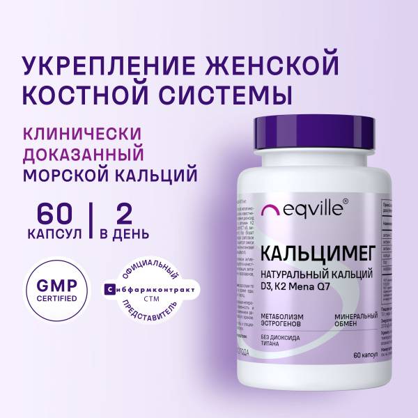 Calcimag is a unique bone and joint support supplement formulated specifically for women's health. This advanced formula features clinically proven, bioavailable calcium from Lithothamnion (Aquamin) seaweed, along with Vitamin D3, Vitamin K2 (MK-7 MenaQ7), phytoestrogens, and boron. Designed to address the specific calcium metabolism needs of women, Calcimag helps reduce the risk of osteoporosis, even at a younger age, and improves bone mineralization. Vitamin D3 regulates calcium and phosphorus metabolism for stronger bones and teeth. MenaQ7, a patented, clinically proven form of Vitamin K2, directs calcium to bones and away from arteries. The combined action of Vitamins K2 and D3 enhances calcium absorption and deposition in bone tissue. Their lipophilic forms ensure optimal digestibility. Soy isoflavones help mitigate estrogen deficiency associated with menopause, optimizing hormonal balance and reducing calcium loss. Gamma-linolenic acid further supports calcium and phosphorus absorption. Support your bone health and overall well-being with Calcimag.