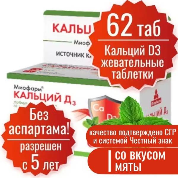 Title: Myopharm Calcium D3 500mg: Mint-Flavored Chewable Tablets for Strong Bones, Teeth & Hair