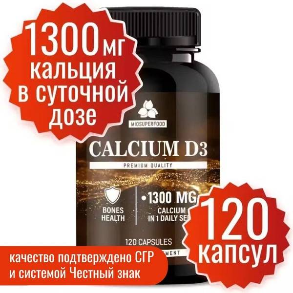 MioSuperfood Calcium D3 Forte from Miopharm provides superior bone, hair, and nail support. Backed by over 5 years of trusted sales in pharmacies across Russia, our commitment to pharmaceutical-grade quality is unwavering. Each bottle contains 120 easy-to-swallow, odorless, and tasteless capsules, delivering optimal value and a high concentration of active ingredients (1020mg per capsule). Vitamin D3 (cholecalciferol) enhances calcium absorption, crucial for bone and tooth mineralization. Calcium itself plays a vital role in bone health, supporting structural integrity, and contributing to numerous essential bodily functions, including nerve transmission, muscle contractions, heart health, and blood clotting. Experience the difference of MioSuperfood – the superior choice for women seeking beauty and overall well-being.