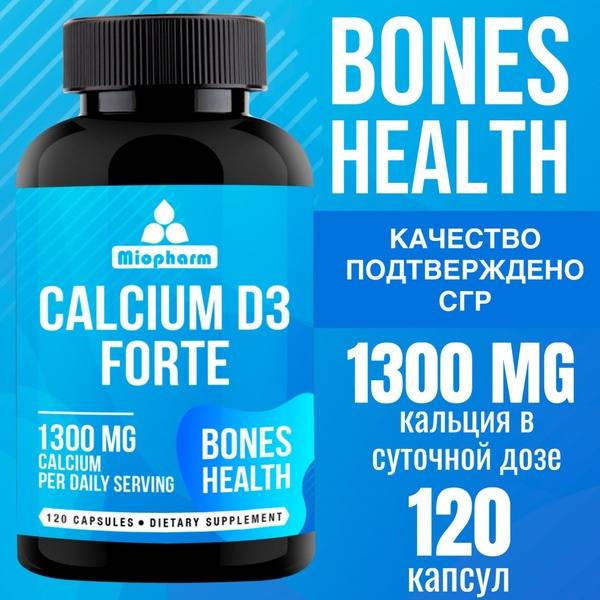Miopharm BlueLine Calcium D3 Forte provides superior bone, hair, and nail support. For over 6 years, Miopharm products have maintained the highest pharmaceutical standards, undergoing rigorous quality control throughout production and distribution via pharmacies nationwide. Each capsule delivers 1300mg of Calcium and 15mcg (600 IU) of Vitamin D3, exceeding the recommended daily intake of 1000mg of Calcium for adults. This potent combination ensures optimal calcium absorption and utilization, supporting strong bones, healthy teeth, muscle function, and a radiant complexion. Vitamin D3 enhances calcium absorption, further strengthening bones and boosting the immune system. Easy-to-swallow, tasteless, and odorless capsules ensure convenient daily supplementation. Miopharm BlueLine Calcium D3 Forte is your key to vibrant health and beauty. Consult your doctor before use if you are pregnant, breastfeeding, or have known allergies.