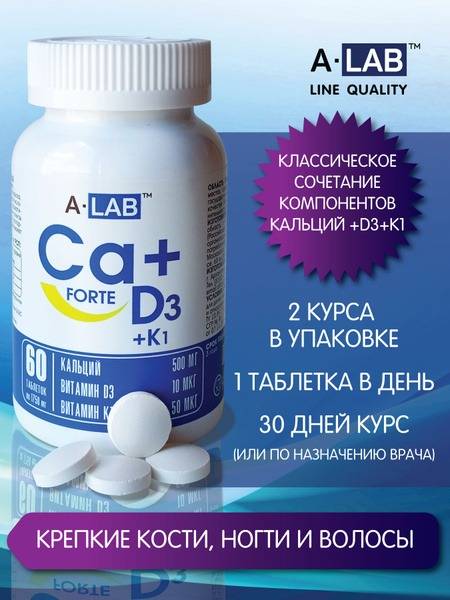 Calcium D3, Vitamin D3, Vitamin K1, Calcium supplement, chewable tablets, bone health, teeth health, hair health, nail health, skin health, osteoporosis prevention, calcium deficiency, A-Lab, dietary supplement, glucose-free, orange flavored, 60 tablets, strong bones, healthy teeth, vibrant hair, strong nails, healthy skin, muscle function, blood clotting, heart health, nerve function, apothecary quality, Russia.